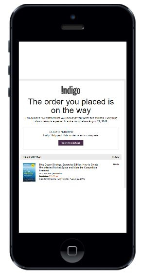 Email confirmation that the order has been received